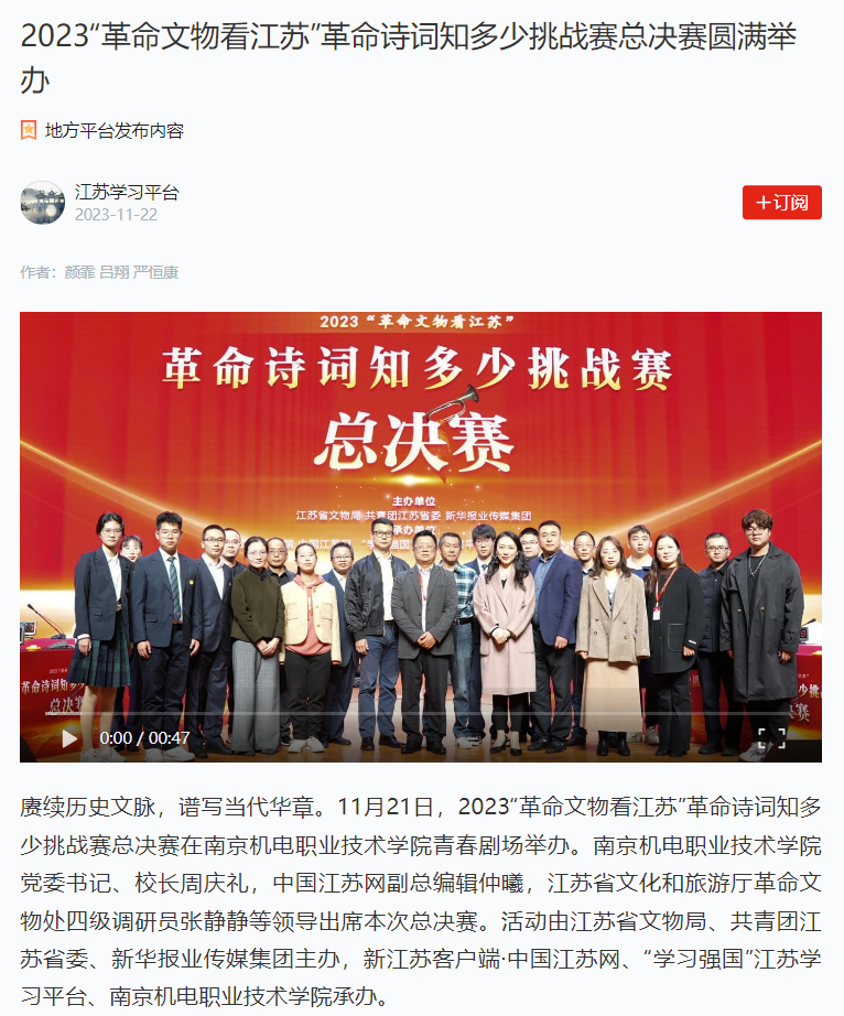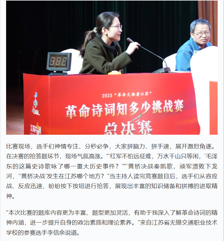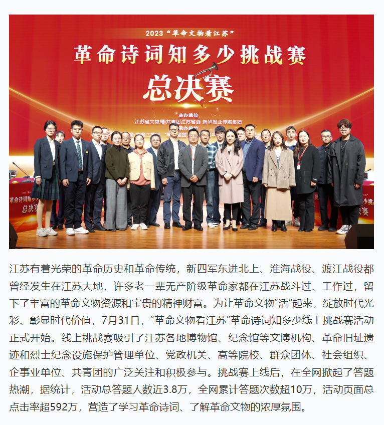 学习强国:2023“革命文物看江苏”革命诗词知多少挑战赛总决赛圆满举办