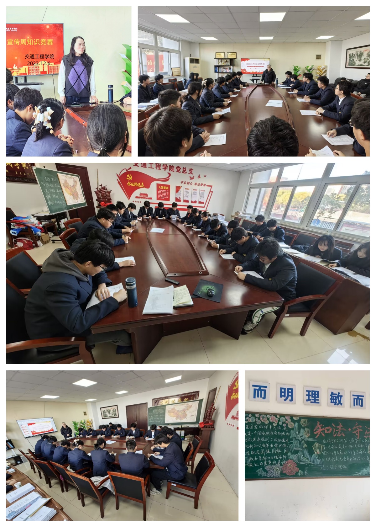 为弘扬宪法精神,维护宪法权威,在第十个国家宪法日到来之际,根据《市教育局关于开展 2023年全市教育系统“宪法宣传周”系列活动的通知》精神,结合学校实际,交通工程学院在2023年12月6日下午组织开展了“宪法宣传周”知识竞赛答题。