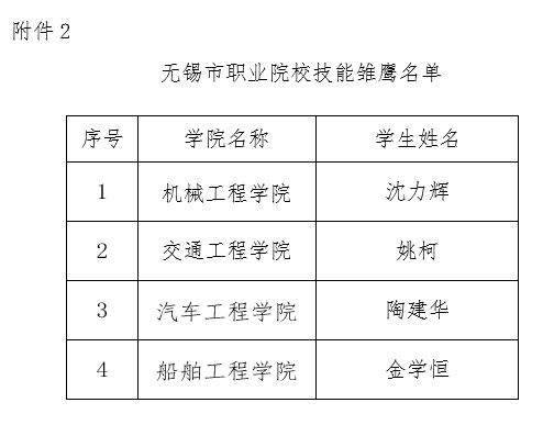 近日,无锡市教育局公布了无锡市职业教育质量提升攀登计划2023年度重点项目,我校11个项目入选:《立德树人有道 春风化雨无声——《新能源汽车构造与维修》课程思政的探索与实践》和《一主两线 德技并修---焊接专业课程思政的探索与实践》两个项目认定为课程思政典型案例;《创新“五四三二一”育人体系 培育新时代智能制造“大国工匠”》认定为职业素养和工匠精神教育典型案例;沈力辉、姚柯、陶建华、金学恒等4名同学认定为技能雏鹰;《钳工技能实训》认定为新形态一体化教材;《物流采购实务》认定为活页式教材;智能交通名师工坊认定为无锡市职业教育名师工坊;交通装备机器人职业体验中心认定为无锡市中小学职业体验示范中心。