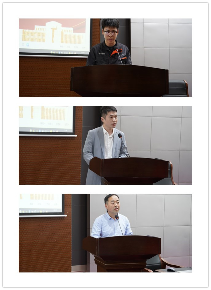 会上,学生代表汽车工程学院郭挺帅、教师代表交通工程学院沈加仁、学院领导代表物流管理学院张龙枝分别发言。
