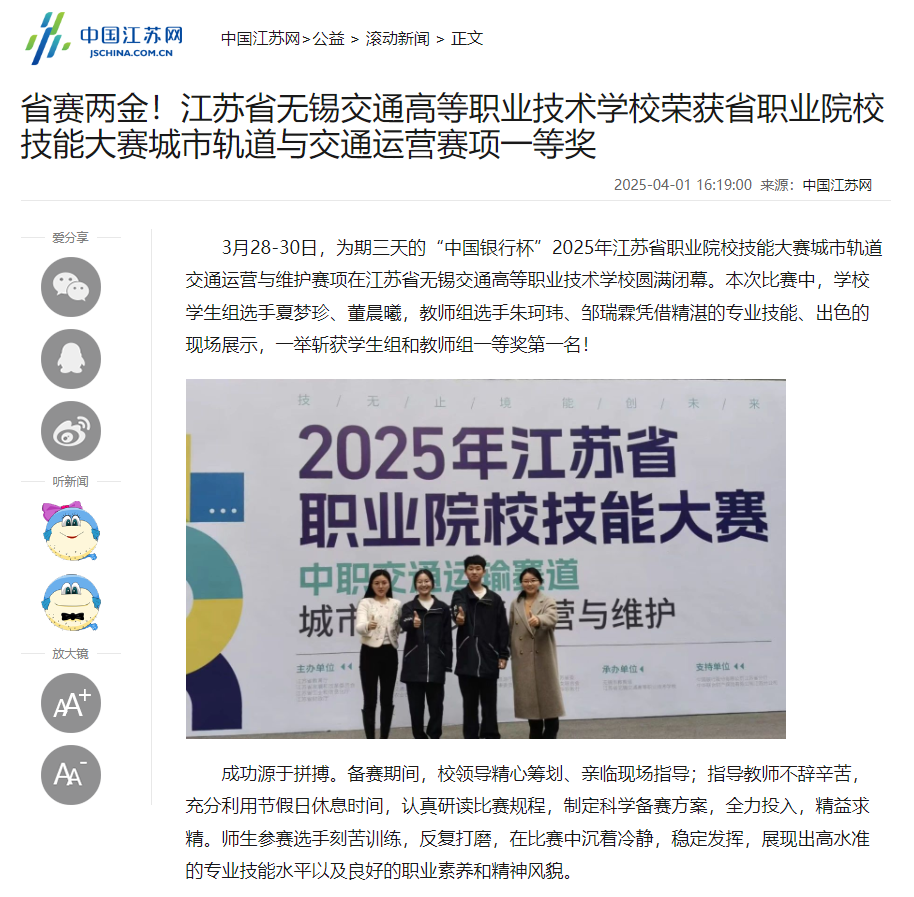 中江网:省赛两金!开云·官方端网页版登录入口荣获省职业院校技能大赛城市轨道与交通运营赛项一等奖
