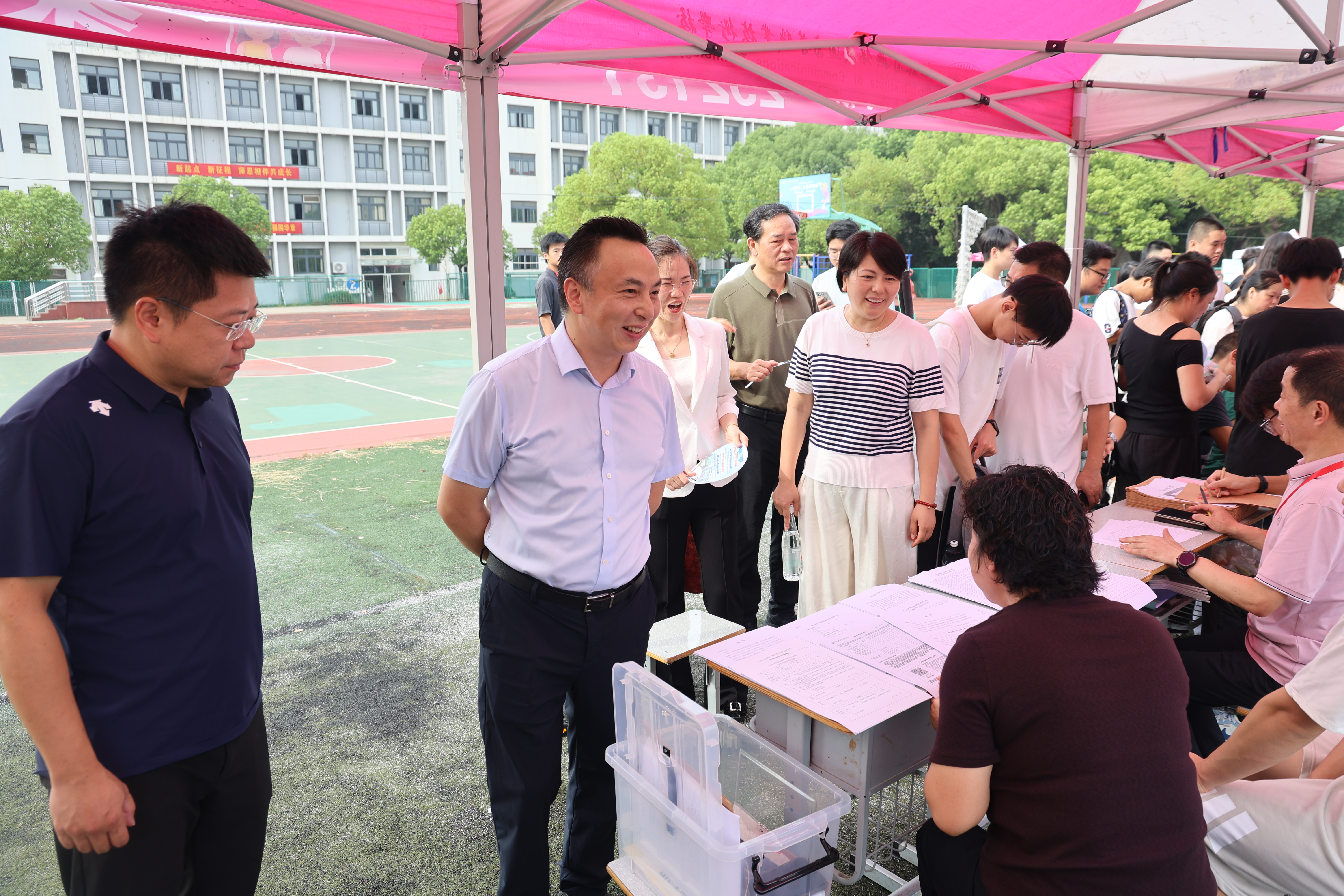 报到当日,校园彩旗飘扬,迎新标语随处可见,处处洋溢着热烈而喜悦的氛围。学校党委书记李进、校长耿兴华等校领导来到现场,深入报到点、宿舍等区域,详细了解迎新工作进展,亲切慰问忙碌的一线教师与志愿者,并与新生及家长亲切交流。校领导勉励新同学要珍惜时光、砺志笃行,尽快融入交校大家庭,为实现人生理想打下坚实基础。