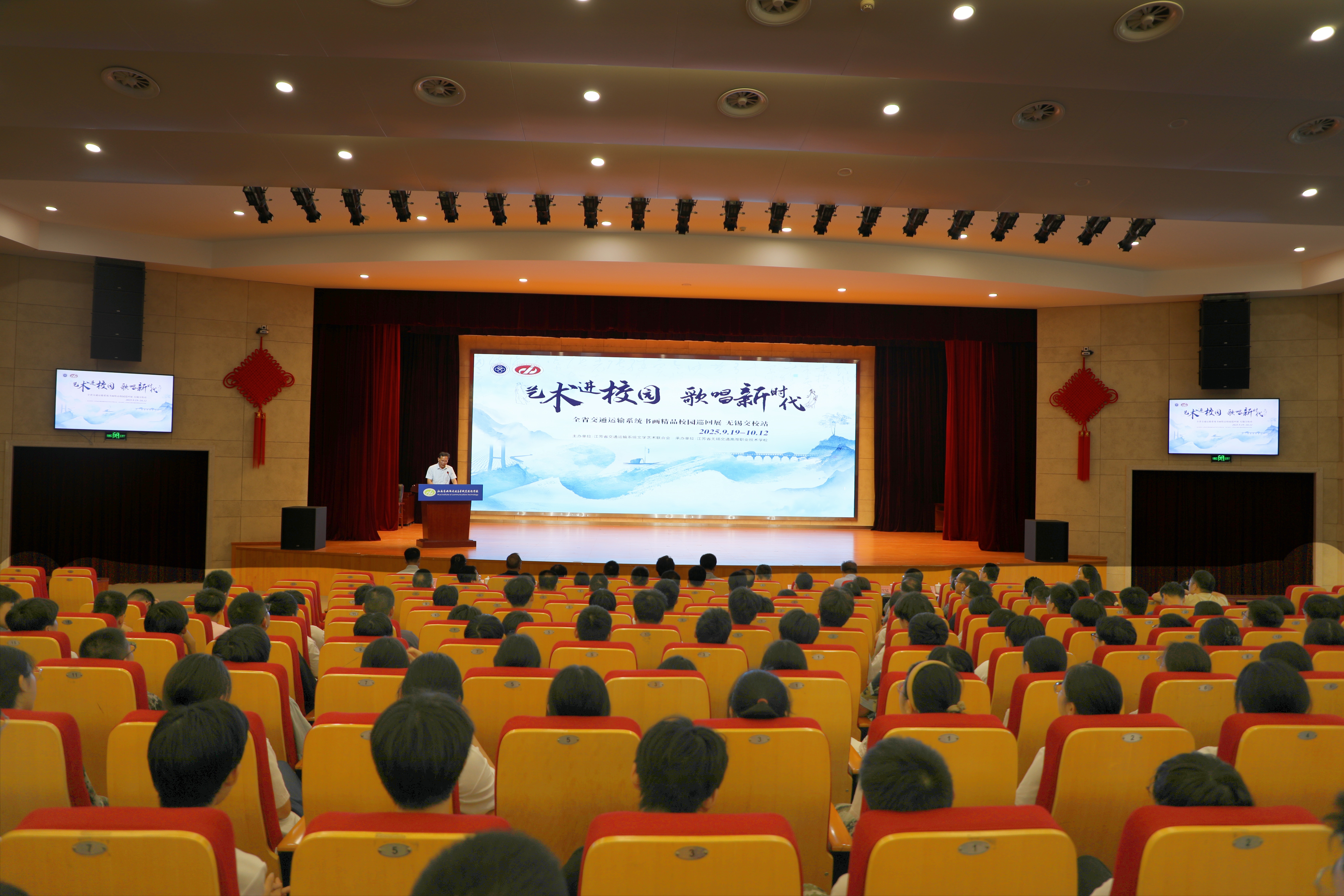 为深入学习习近平文化思想,推动文化育人与诗画艺术深度融合,9月19日上午,“艺术进校园·歌唱新时代”全省交通运输系统书画精品校园巡回展走进开云·官方端网页版登录入口。江苏省交通运输厅原党组成员、副厅长、江苏交通文联会长金凌,省交通运输厅原二级巡视员、机关党委书记,江苏交通文联副会长陈萍,省交通运输厅原二级巡视员、江苏交通文联副会长兼秘书长黄岩,江苏交通文联执行秘书长、作家分会会长陆新民,江苏交通文联书画分会会长汤志平,学校党委书记李进等领导出席活动。江苏交通文联相关负责同志、学校领导班子成员、各部门负责人以及师生代表参加活动并参观书画展。活动由学校校长耿兴华主持。