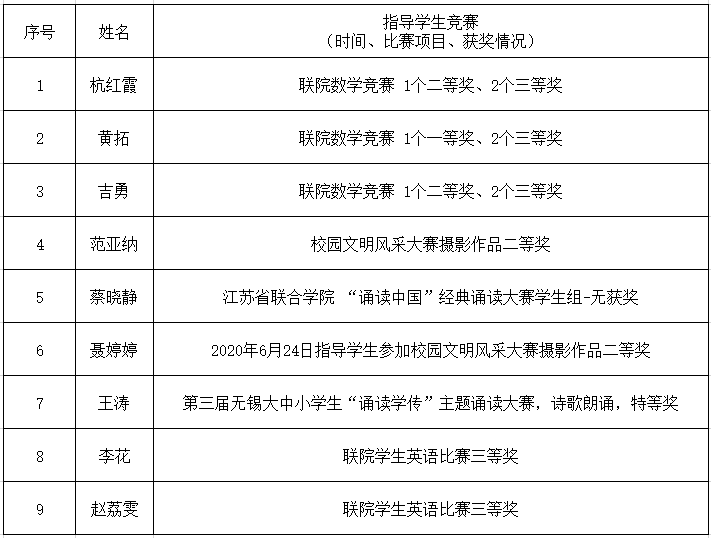 2020年指导学生参加比赛获奖情况