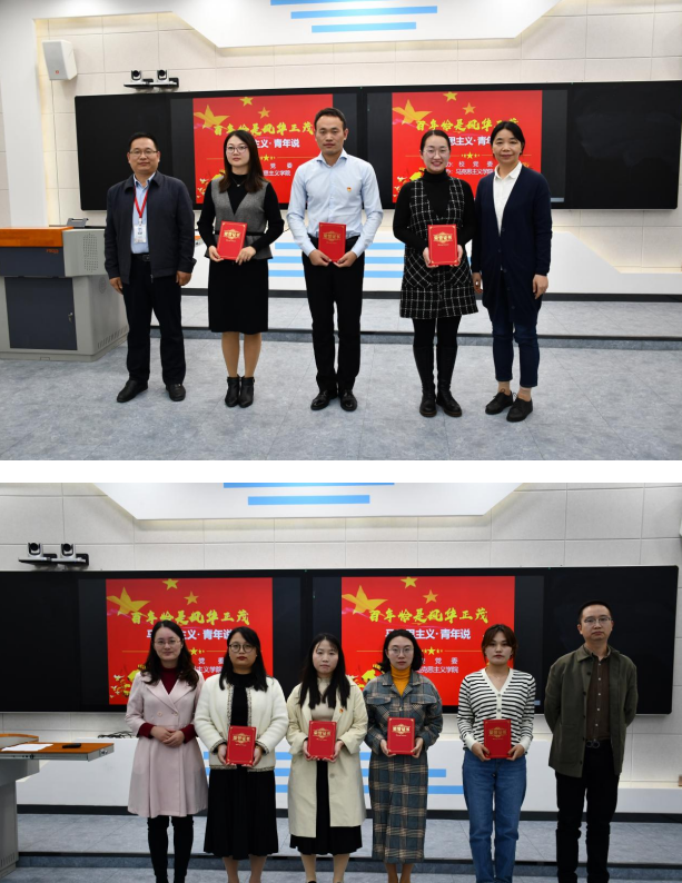 “青年兴则国家兴,青年强则国家强。青年一代有理想、有本领、有担当,国家就有前途,民族就有希望。”在中国共产党迎来百年华诞之际,为让广大青年师生深入学习党史,坚定理想信念,勇担职责使命,马克思主义学院在学校党委的坚强领导下承办“百年恰是风华正茂”-马克思主义青年说演讲比赛。经过前期初赛、复赛的角逐,10月27日,9位优秀教师选手在智慧教室进行决赛,党政办、组织人事处、纪委办公室及教务处领导出席此次活动并担任评委。