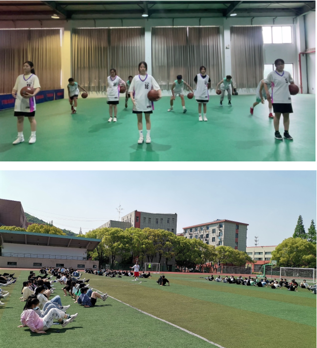 四月的校园,惠山初阳,太湖和风,生机盎然。操场上,师生严格落实疫情防控要求,保持安全距离。教学过程中,教师讲解清晰,示范动作准确,学生精神抖擞,有序参与动作学练,篮球、足球、飞盘、跳绳、广播操等教学项目有序推进。为进一步激发学生学练热情,体育教师协力合作,融合网络流行的“本草纲目”“龙拳”等热门音乐,创编学生喜闻乐见的健身操,运动的汗水在四月暖阳的映衬下熠熠生辉。