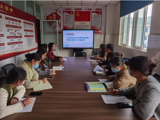 王老师在会上详细阐释了思政元素的五个维度和英语课堂思政教学模式的初步构想。英语课组成员围绕课题展开了积极讨论。