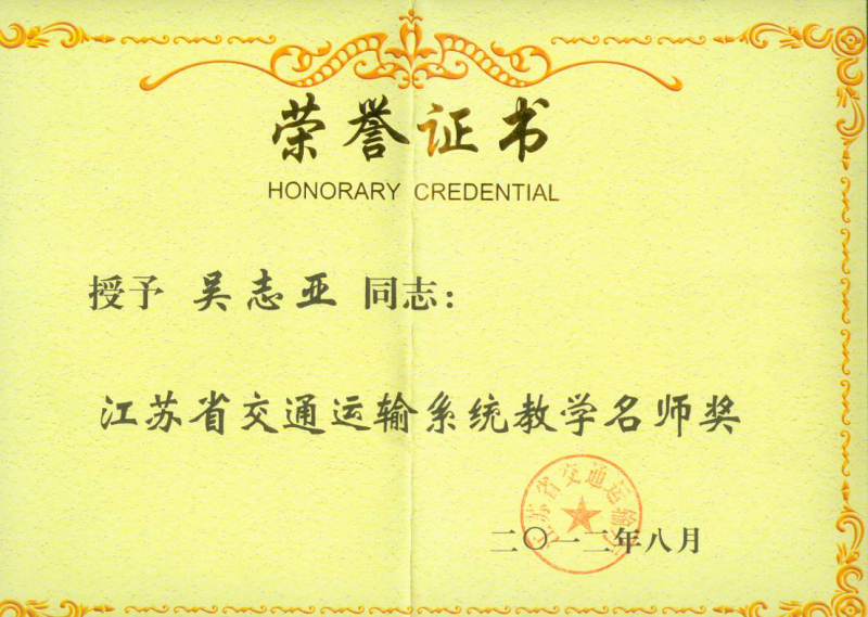 吴志亚,中共党员,教授,电焊工高级技师、高级考证员,是江苏省“333工程”培养对象、江苏省交通运输系统100人才、江苏省高校“青蓝工程”优秀青年骨干教师、江苏省交通系统教学名师、江苏交通运输系统优秀教科研团队带头人、总院专业带头人、省实训基地负责人、江苏交通运输系统大师工作室负责人、无锡市名师工作室负责人、无锡市技能大师工作室负责人。