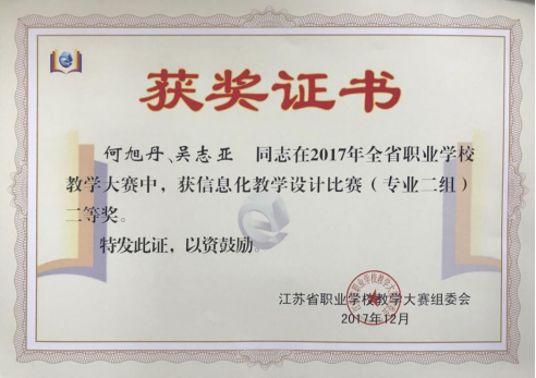 江苏省职业学校信息化教学设计比赛二等奖