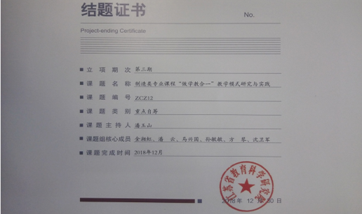结业证书-制造类专业课程“做学教合一”教学模式研究与实践