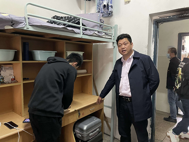 3月29日下午,机电工程学院院长夏春荣,党总支书记徐小国,党总支副书记王光祥深入学生宿舍进行安全、卫生检查工作。