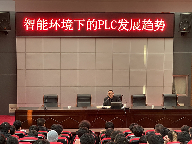 11月24日,机电工程学院于学校学术报告厅组织开展《智能环境下的PLC发展趋势》主题讲座,本次讲座由我校产业教授、学院专业建设指导委员会委员、无锡信捷电气股份有限公司副总经理、无锡市机器人与智能制造协会秘书长、江苏省产业教授、无锡市智能制造职教集团理事长过志强教授主讲,讲座由机电工程学院夏春荣院长主持,学院学生积极参加讲座活动。
