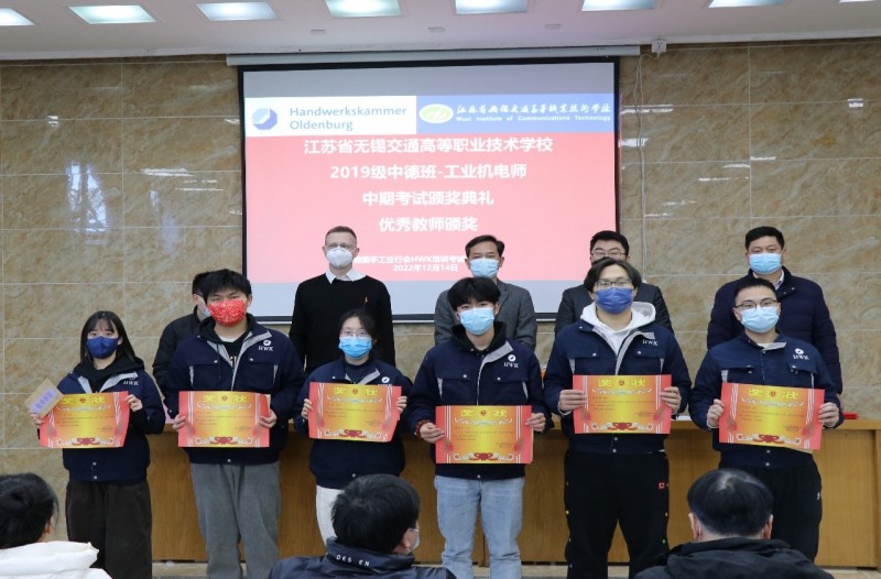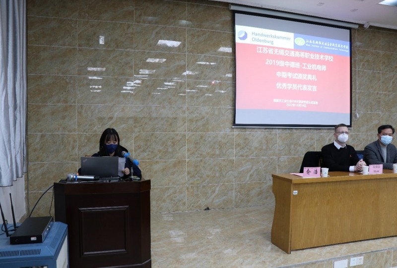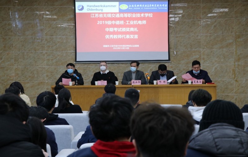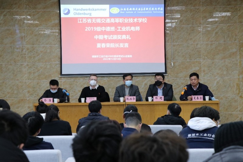 为进一步开展好德国手工业行会工业机电师培养项目,不断总结经验和成果,激励同学们将更多的精力投入到项目学习中,机电工程学院与德国手工业行会中国项目办于20221214日下午,在锡澄校区举行了2019级工业机电师中期考试颁奖典礼。学校党委委员、副校长耿兴华,德国手工业行会中国项目办总负责人邓珂博士、机电工程学院院长夏春荣、德国手工业行会教官Andreas Meyer、学院优秀教师、家长代表、全体2019级中德班学生等参加了本次颁奖典礼,会议由机电工程学院副院长俞浩主持。