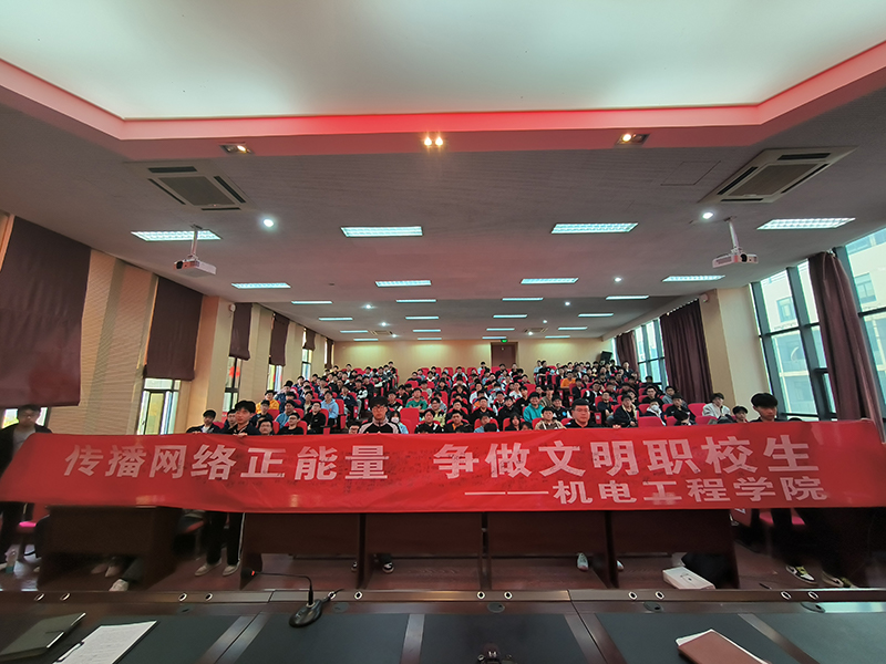 3月15日下午,机电工程学院于学校学术报告厅组织开展“传播网络正能量 争做文明职校生”的主题活动,机电工程学院党总支副书记王光祥出席并做主题讲话,机电工程学院2021级学生参加活动,该活动由机电工程学院华亦峰老师主持。