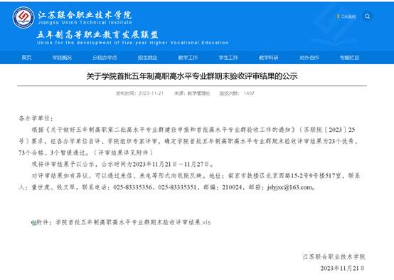 电气自动化技术专业群通过江苏联合职业技术学院高水平专业群验收