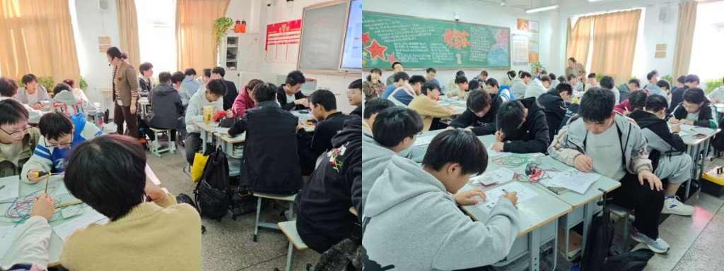 课堂开篇,吴玉琴老师以教室单开单控灯为切入点,通过实物演示,讲解单控开关的结构与功能,用“连接生活与物理”的方式降低认知门槛,强调“正确接线”的重要性,提升学生的安全与规范意识。同时,课程聚焦“双控电路原理图绘制与实际连接”教学重点,延伸创新拓展,对接智能前沿。深入分析传统电路与智能设备的兼容性、布线改造、通信协议匹配等智能升级关键问题,引导学生结合实际场景设计升级方案,培养创新思维与问题解决能力。