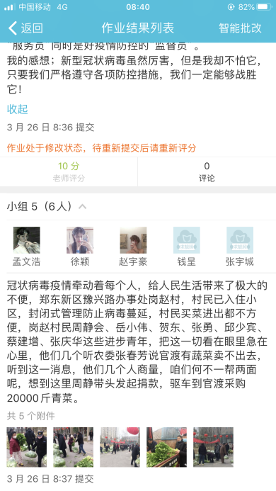 班主任李花老师通过视频介绍新冠病毒、科普分析、交流发言、在云班课上设置如何科学防疫的小测试、每个小组一个主题,分享此次疫情中出现的感人故事、优秀作品展示等几个步骤,为同学们开设了一堂内容丰富,生动且意义深刻的主题班会。同学们也纷纷完成了手抄报、感言视频、观后感等作品。