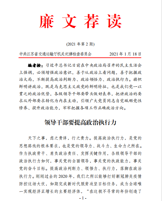廉文荐读2021年第2期——领导干部要提高政治执行力
