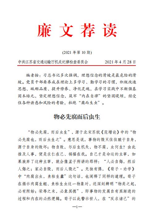 廉文荐读2021年第10期——物必先腐而后重生