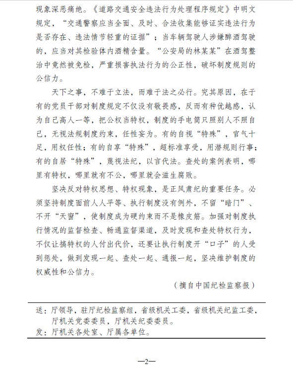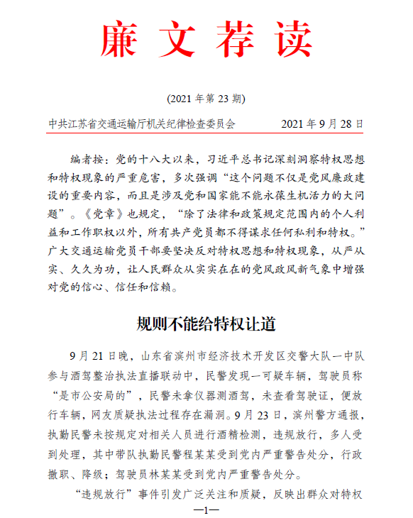 2021年廉文荐读第23期——规则不能给特权让道