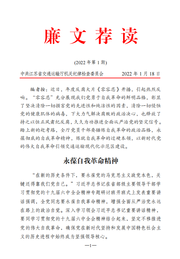 2022年廉文荐读第1期——永葆自我革命精神