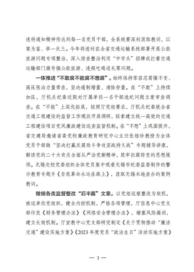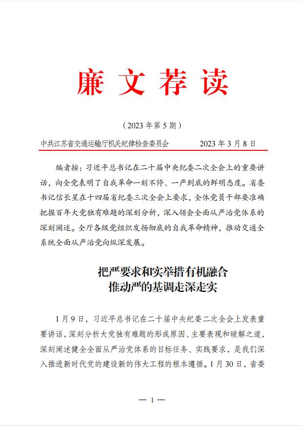 《江苏交通运输党风廉政建设》专刊 2024年第1期