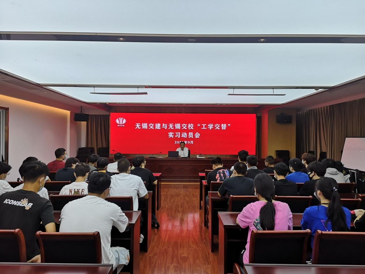 随后,赵副院长代表学院作工学交替动员讲话,介绍了学校与无锡交建集团多年的校企合作状况和良好的发展态势和本次工学交替实习的意义,希望同学们严格遵守企业的规章制度,懂规矩、讲诚信,能够一切服从指挥,努力工作,学习本领,并学会感恩,注重勤劳与诚信,严格规范意识,在生活和工作中严格要求自己,要圆满完成本次工学交替实习任务。