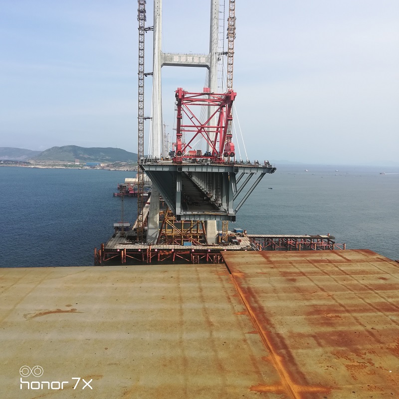 平潭海峡公铁两用大桥全长16.34公里,项目投资120亿元。桥梁上层为时速100公里的六车道高速公路、下层为时速200公里的双线Ⅰ级铁路,主梁采用钢桁混合梁斜拉桥。项目开工时间2013年11月,2018年4月26日首个航道桥主塔封顶,计划通车时间2020年。主要工程数量包括133万方混凝土、15.4万吨钢筋、13.9万吨钢梁、1.02万吨钢绞线、5065吨斜拉索等。