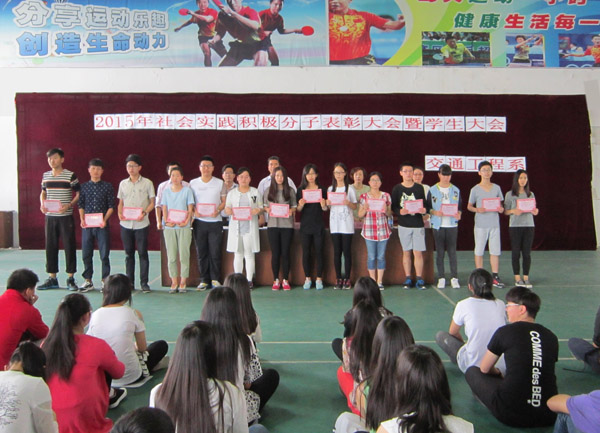 会上,李俊老师首先宣读2015年社会实践积极分子表彰决定,公布交通工程系60名同学获得“2015年社会实践积极分子”的荣誉称号,并进行了颁奖仪式。接着由邹主任宣读对近期违反校纪校规学生的处分决定。