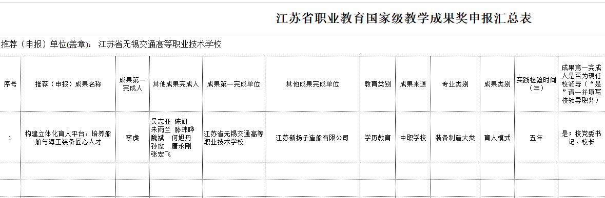 根据《江苏省教育厅关于做好2022年职业教育国家级教学成果奖申报推荐工作的通知》(苏教职函〔202237号)精神,按照公开、公正、公平的原则,经成果完成人申报、教务处审核,现将拟推荐项目予以公示。