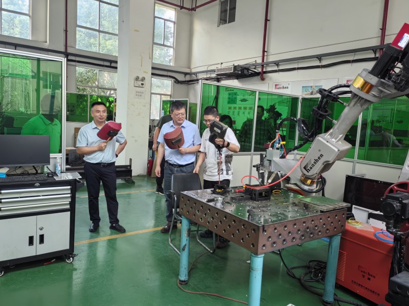 李校长一行参观了公司智能焊接车间设施设备、技术成果和产品应用情况。座谈会上,何晓阳介绍了公司发展情况、以及近些年公司在焊接行业领域取得的成绩。雷洪波总经理详细介绍了目前公司经营范围领域、研发产品、技术服务等方面内容。