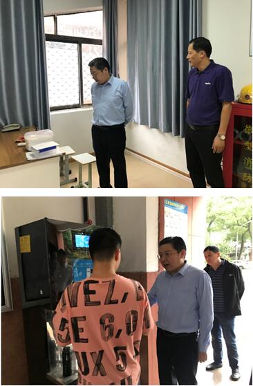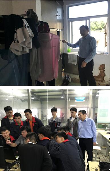 李书记一行来到校区值班室,李书记仔细询问值班室的设施情况,了解值班人员的休息环境。来到教学楼,李书记与一名正在打水的学生亲切交流,询问直供水的价格、使用是否便利。走进教室,李书记与同学们热情的打招呼,并向学生了解所学的专业,上课的科目,学习上是否存在困难。在教师办公室,李书记与老师们亲切交谈,了解从钱荣校区过来学生的学习、生活情况是否正常,教师的办公条件是否完善等。当了解到运动场塑胶跑道部分损坏的情况后,李书记指示要及时维修更换,确保学生的运动安全。来到宿舍区域,李书记向宿舍管理员询问学生使用冰箱、微波炉的情况。李书记走进学生宿舍,察看了宿舍里的床铺、柜子等生活设施。最后来到实训车间,李书记现场观看同学们的实训听课情况,与实训教师亲切交流,鼓励同学们要努力学好知识、技能,回报社会。