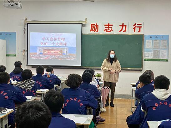 为深入学习贯彻党的二十大精神,机械工程学院积极开展党员进班级活动,向学生宣讲党的二十大精神。