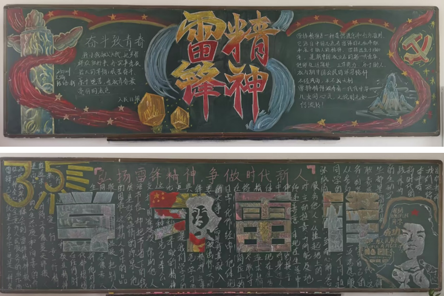 此外,还组织主题黑板报评比活动,让雷锋精神入脑入心,营造崇德向善、精益求精的育人氛围。