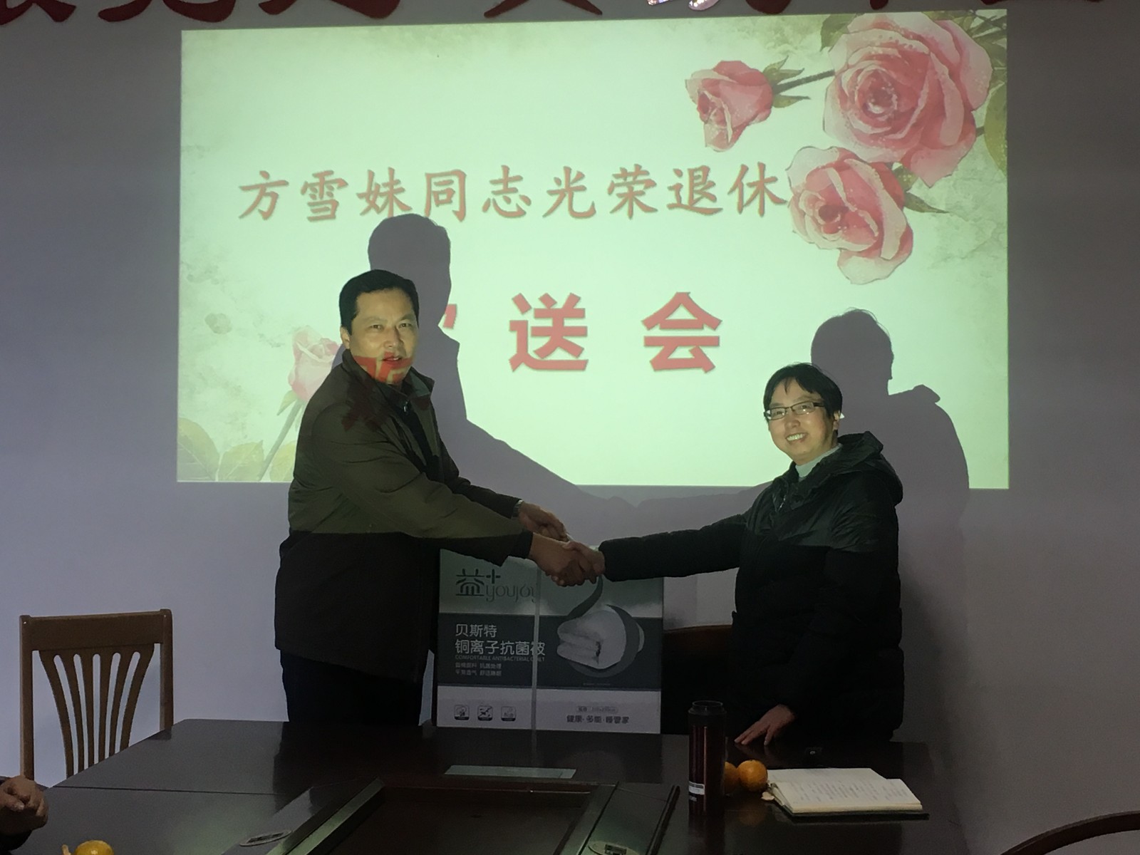欢送会上,杨书记和邢院长对方雪妹同志将毕生精力奉献给学校的后勤服务事业表示诚挚的感谢,对她踏实、默默奉献的工作作风和工作态度表达了崇高的敬意。其它与会人员都作了发言,衷心祝贺方雪妹同志光荣退休,并祝愿她退休后一定合理、科学安排好自己晚年生活,保持心情舒畅,退而不休,老有所乐,健康长寿,合家欢乐!最后,方雪妹也发表了感言,对昔日与同事一起工作美好时光的留恋,并饱含着对领导、同事以及学生依依不舍之情,心存感激,心系学校,心恋领导、同事和学生。字字句句是真情的流露,情到深处泪流满面。