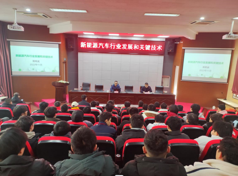 12月13日下午,学校邀请汽车工程学院郑军武院长、副教授在校学术报告厅为全校师生做“新能源汽车行业发展和关键技术”专题讲座,100多名师生到场聆听,讲座由汽车工程学院副院长金传琦主持。
