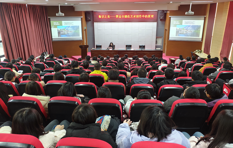 12月17日下午,教务处副处长许莹霞副教授为全校师生做“数学之美——黄金分割在艺术创作中的展现”专题讲座,近180名师生到场聆听。