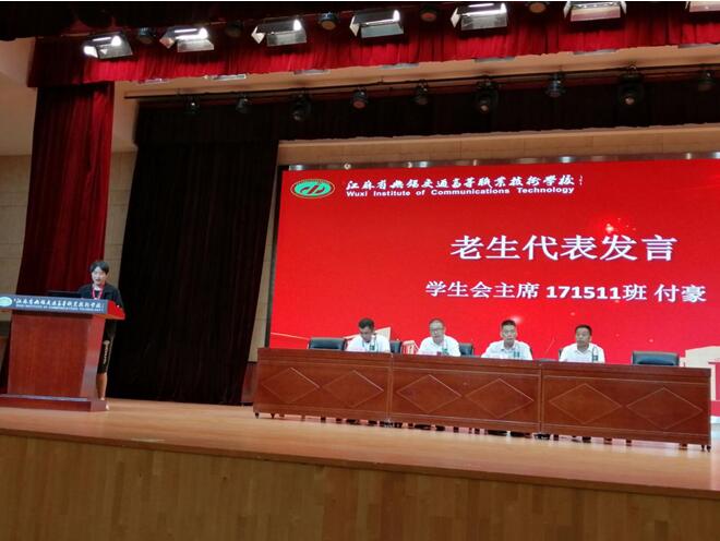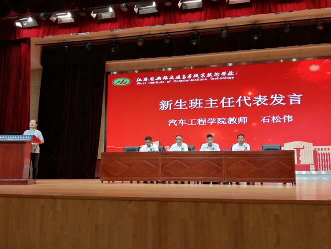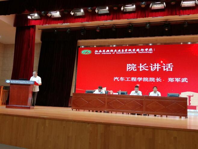 首先,全体师生、教官起立,齐唱国歌,展现了汽车工程学院全体师生昂扬向上、拼搏进取的精神风貌。接着,观看了学校宣传视频和学院招生宣传视频。随后周晓伟书记宣读了助理班主任名单,并举行聘任仪式;石松伟老师代表新生班主任发言,201531班徐阳同学代表新生发言,学院学生会主席、171511班付豪代表老生发言;金传琦副院长对20级新生进行入学教育。郑军武院长代表学院讲话,要求同学们一要端正学习态度,树立远大理想;二要培养良好的学习习惯,铸炼优秀的道德品质;三要学习勤奋刻苦,文化和技能素质全面提高;四要爱校如爱家,守纪并守法实现自己的理想和抱负!
