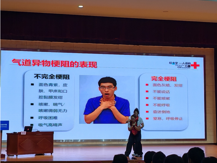 培训伊始,蒋老师以一段精彩的视频引入,生动讲述红十字会的起源与标志意义。从战争时期救护伤兵的艰难起步,到如今在全球人道救援中的重要作用,学生们深刻感受到红十字运动守护生命的伟大使命,为后续学习奠定了思想基础。