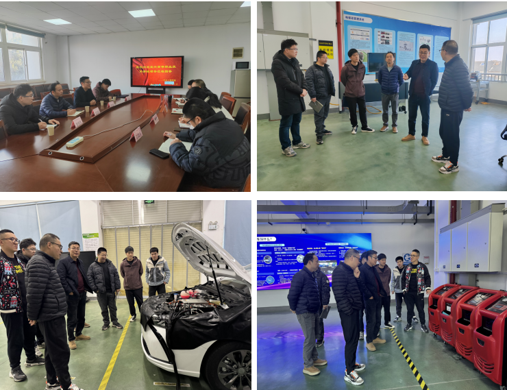 为深化校际合作,携手推动职业教育高质量发展。2026年1月15日,宜兴高等职业技术学校新能源与制造学院院长蒋东敏、吴旭辉率领交流团队莅临汽车工程学院开展专题学习与交流活动。学院院长郑军武、副院长杨香莲、实训中心副主任史敏智及相关专业骨干教师共同参与了此次交流座谈活动。