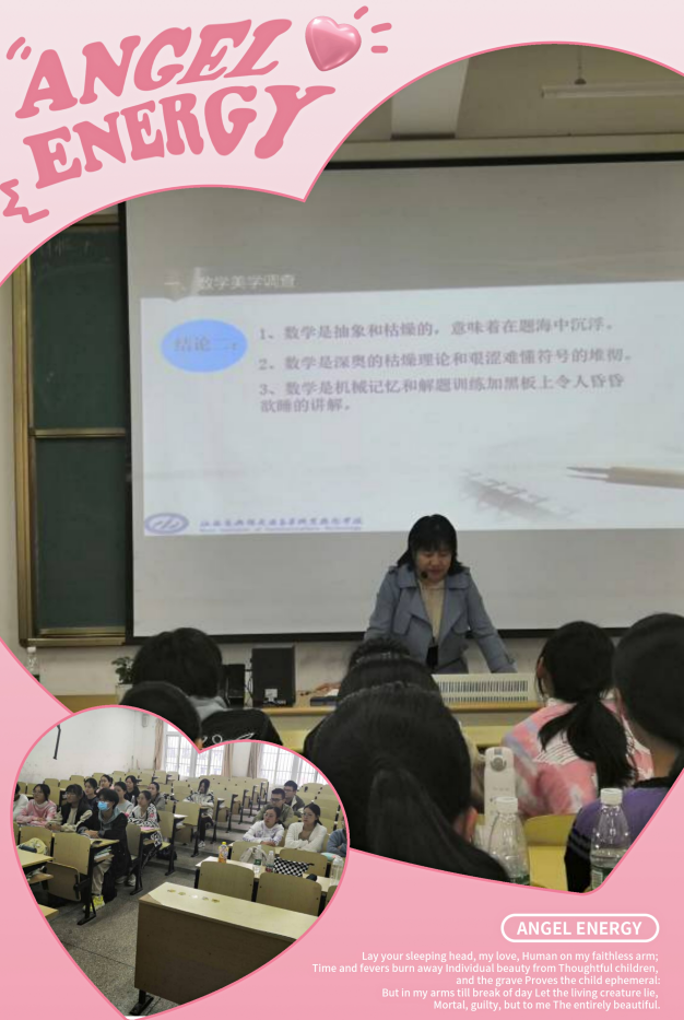 通过此次活动,同学们了解了数学美的各种形态,包括文化艺术美、对称美、简洁美、和谐美、奇异美、突变美、创新美、发展美等,真正地走近数学,进一步激发了学生对数学的热情,吸引更多的学生投入到对数学之美的探索中。