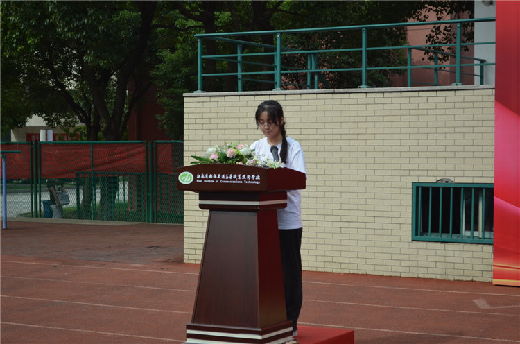 开学典礼在庄严的国歌声中拉开序幕。滕蓓老师代表全校教师对新生的到来表示欢迎,她从传承和发扬工匠精神和爱严相济的学生管理两个方面分享了自己的心得。新生代表信息管理学院周佳怡代表全体2018级新生表态发言,号召全体新生发扬行知立身,师表立教的校训及崇德、重技、务实、创新的精神,学会认知、学会做事、学会做人。学长盈康向18级新生发出倡议:要爱国、感恩、自强、求真、实干、自控、合理安排时间、参加社会实践、早做职业规划。