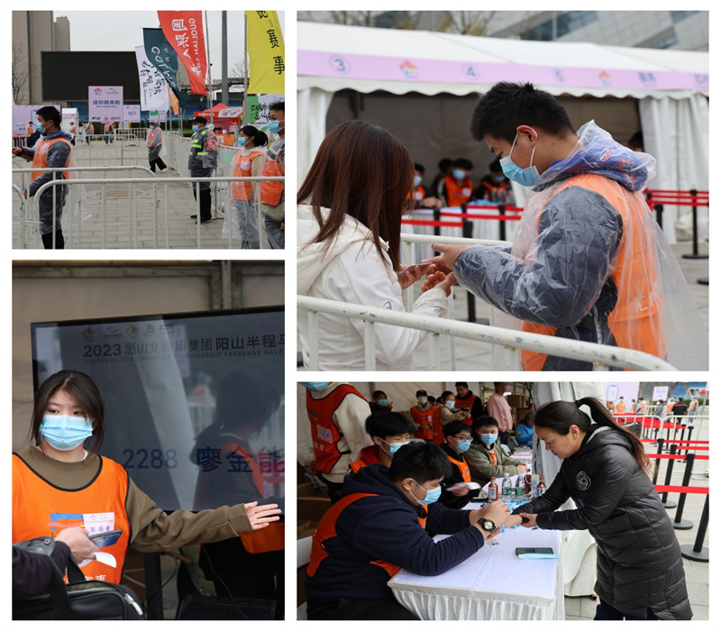 3月24日至25日,交校志愿者们7点不到就从学校出发,奔赴惠山区全民健身中心从事赛前物料领取、号码布发放、存衣包发放、人脸识别系统入场引导、检录、芯片检测服务、现场秩序管理、画面讲解、外场指引等工作,直到晚上九点多才返回学校,用热情、周到、细致的服务为2023阳山半程马拉松保驾护航。