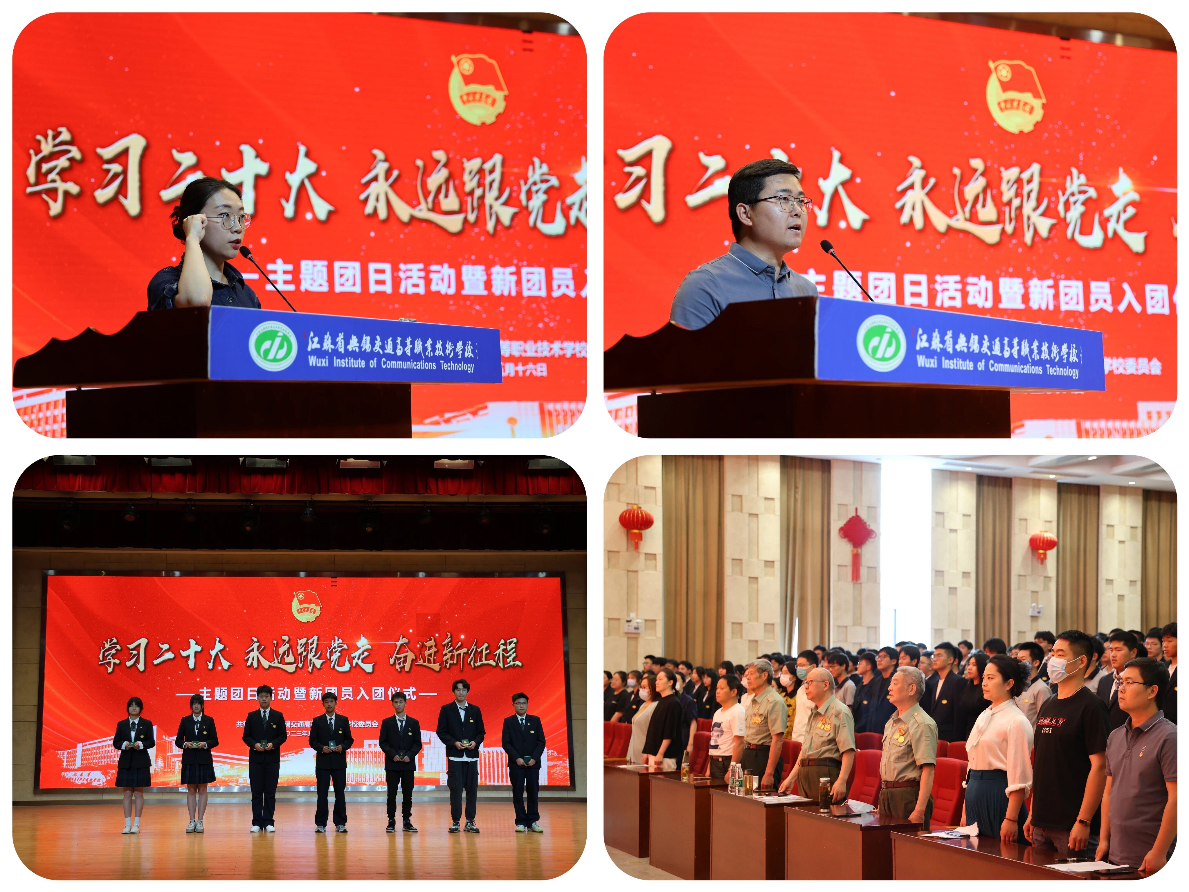 5月16日,学校在大礼堂组织开展了“学习二十大 永远跟党走 奋进新征程”主题团日活动暨新团员入团仪式。活动邀请了无锡市关工委报告团成员姚炳华等一行四人出席活动并开展专题讲座。校团委委员、各学院团总支书记、新老团员等600余人参加活动。活动由校团委委员任海波主持。