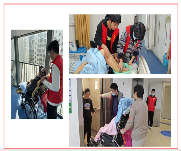 机电、物流学院志愿者们赴安民康复医院、梅园社区残疾人之家开展学雷锋志愿活动。帮患者推车、洗脚,聊天,协助家属推病患进出电梯,给予他们温暖和关怀;帮忙打扫环境卫生,让医护人员和患者拥有一个明亮干净的环境。爱心献社会,真情暖人心,学生志愿者们用自己的行动展现了雷锋精神,无私奉献,乐于助人。