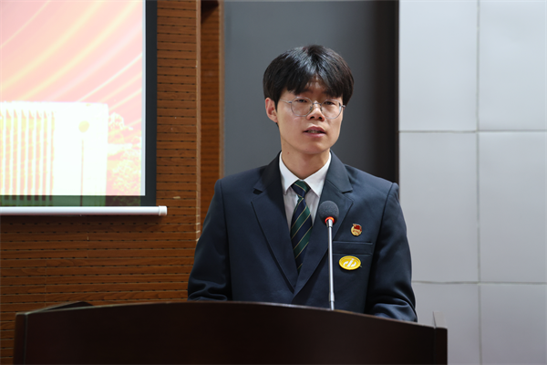 汽车工程学院曹阳作为新团员代表发言,他表示将以此次入团为契机,坚定理想信念,不断追求进步,以更高标准要求自己,以实际行动践行入团誓言,为学校的发展和社会的进步贡献自己的力量。交通工程学院张昊作为优秀团员代表发言,他号召全体新团员在平时的学习、生活和社会实践中,时刻牢记自己是一名共青团员,按照团员标准严格要求自己,在同学中起到模范带头作用,努力成为其他同学的榜样。