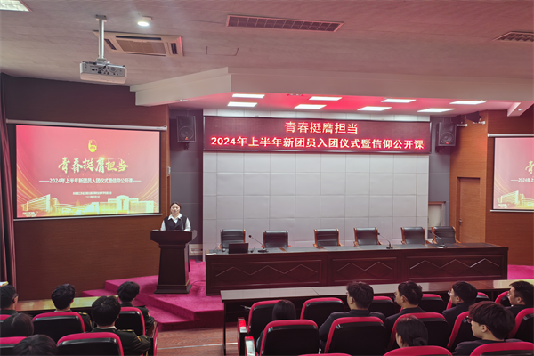 为深入贯彻习近平总书记关于青年工作的重要思想,践行党、团、队一体化培养体系要求,规范开展仪式教育,5月8日下午,学校团委在学术报告厅举行“青春挺膺担当”2024年新团员入团仪式暨信仰公开课,引导广大团员青年弘扬五四精神、勇担青春使命,以实际行动争做有理想、敢担当、能吃苦、肯奋斗的新时代好青年。校团委委员、各二级学院团总支书记、团总支委员、团支部书记、2024年上半年新发展团员、优秀团员代表等200余人参加仪式,活动由校团委委员任海波主持。