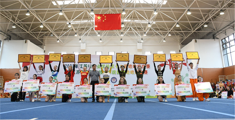 本届啦啦操比赛既展示了整齐划一的花球和街舞示范套路,更呈现了“青春心向党”创意编排,近900名运动员逐队展示、挥洒青春无畏、逐梦扬威的汗水。开幕式精彩纷呈、亮点频出,四支冠军队伍的运动员们再一次用青春洋溢的笑容、整齐划一的步伐、浑然一体的表演完美呈现了当代职业学校学生的风貌;近350名运动员代表同场跳动,用青春的力量献礼中国共产党筚路蓝缕、砥砺奋进的百年历程。两天的比赛,节凑紧凑,安排合理,井然有序,成绩喜人,赛场上的每一位运动员都积极拼搏,赛场边加油声此起彼伏。最终南京市玄武中等专业学校获得中职组团体总分第一名,运河高等师范学校(江苏联合职业技术学院运河高等师范学校办学点)获得高职组团体总分第一名。