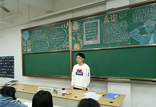 学院团总支思想上高度重视疫情防控工作,组织、督促各团支部落实每天教室、宿舍的通风、卫生清扫和全面消杀工作,相关消杀记录统一交学院,同时要求各支部安排专人落实学生在智慧校园的每日健康信息的填报工作,确保疫情防控有序有效。组织学生进行各类安全的主题教育,安全教育工作的重点放在疫情防控、防火、防盗、防诈骗以及学生自身安全方面。定期组织专(兼)职辅导员和学院安全员对学生宿舍进行了安全大检查,增强了同学们的安全意识和纪律意识。