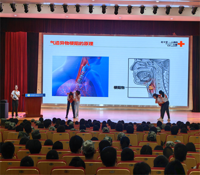为进一步提高学生安全防范意识以及应对突发事件的自救互救能力,同时丰富校园军训活动内容,9月22日下午,学校邀请无锡市滨湖区红十字会救护师走进学校开展应急救护普及培训,学校2000余名新生参加了培训。
